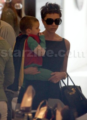 Victoria Beckham, with sons Romeo and Cruz, had a little bit of a runway scare on an air plane bound for London yesterday afternoon.