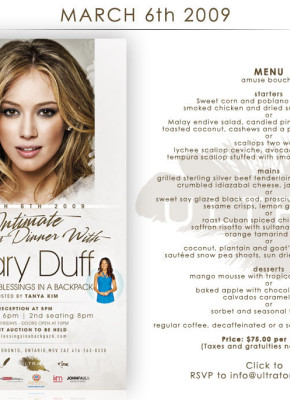 All you Canadian Hilary Duff fans out there have the chance to sit down for dinner with Hilary Duff and meet the star at a charity dinner party at Ultra in Toronto. For just $75 Canadian dollars you can sit down at this fancy meal with HD, then have the chance to approach her to […]