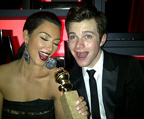 Kim Kardashian Gets With GLEE At Globes After Party