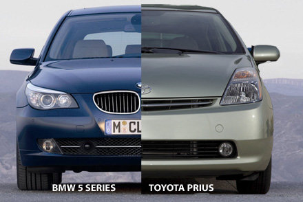 I don’t know how many celebs are bragging these days about going “GREEN” and are speeding around in their hybrids all in the name of fuel efficiency and saving the world from Global Warming. Here is something I found to be very shocking and to be honest a bit refreshing after seeing all these uber rich plastic characters chugging down bottle after bottle of plastic bottled water and continually feeding their fashion thirst of whatever is HOT today! What about Reduce, Reuse, Recycle?! Green is not Chic. . .It is a way of life. So, for the time being Demi Moore, Cameron Diaz, and all you other posers who are faking to do your part. . .this ones for you! From www.goodcleantech.com “Is this a case of man bites dog? A mid-size BMW sedan equipped with a diesel engine returned better fuel economy on a 545-mile, London-to-Geneva, run than a gasoline-powered Toyota Prius. A BMW 520d with a 2.0-liter diesel engine and regenerative braking (but no heavy duty hybrid features) got 41.9 mpg while the full-hybrid Prius, 500 pounds lighter, got 40.1 mpg.Two writers for the Sunday Times (London) wondered if official mpg ratings were accurate after hearing from their readers who said the Prius ratings were high by 15 (U.K.) mpg. “If our readers are right and the official figure is wrong it has important implications, not least of which is that people driving frugal diesels are getting a raw deal,” the paper said, since hybrids get some tax and roadway access benefits in Europe as they do in the U.S. To find out, they drove BMW’s midsize 5 Series sedan and the Prius London-to-Geneva, adding 100 miles to the route “to give the Prius the advantage of running in urban conditions where its petrol-electric drivetrain comes into its own.”Whilst the BMW “doesn’t have the external look of a green car and you don’t get the same self-righteous glow when you are driving it,” it does have a series of energy-saving features BMW calls EfficientDynamics: battery recharge when braking, good aerodynamics, low rolling resistance, a continuous fuel consumption gauge on the dashboard, and a six-speed manual transmission that is rated as improving fuel economy by about 10%. Testers found the 520d “not startlingly quick … [but] it cruised happily at the French autoroute limit (dry conditions) of 78mph towards the champagne region.” When the trip was done, the BMW still had a third of its tank in reserve.The Prius, in comparison, ran out of gas. Not because of lousy mileage but because the tank is smaller (and the testers had a spare can of gas aboard). Acceleration was “hardly dragstrip quick and slower than the BMW, but still respectable.” The Prius weighed 573 pounds less and had an aerodynamic shape “as slippery as a campaign manager discussing political donations,” leading the testers to believe “the Prius should take less energy than the BMW to maintain a constant cruising speed.” Not so. As many people know, the advantage of hybrids lies in urban driving where the stop-and-go recaptures the car’s energy. On the highway, it’s one more four-cylinder car pushing throught the wind.The full story is on the website of the Sunday Times (London): “Toyota Prius proves a gas guzzler in a race with the BMW 520d: The Toyota hybrid is hailed as an eco-paragon, so how does it fare against a big BMW? To find out our correspondents go on a run to Geneva.” An Imperial gallon is 1.2 U.S. gallons, or a U.S. gallon is 0.83 Imperial gallons. Roughly speaking, discount the Times numbers by one-fifth: a 50 mpg vehicle to them is a 40 mpg vehicle to us Yanks. Another reason we should all go metric.”
