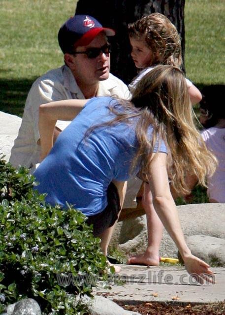But I want to know for sure why you are dressed like a character you played in a movie 19 years ago?? Charlie Sheen took daughters Sam and Lola to a park in Beverly Hills this past weekend with his girlfriend Brooke Mueller.