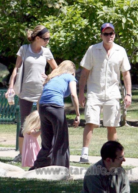 Joining them for a walk in the park was also Mueller’s good ( and sort of pregnant looking) friend Rebecca Gayheart, who was looking to be sporting a baby bump of her own. Now I know its impolite to speculate a woman’s pregnancy without being certain…but what do you think?? Decide for yourself with the photos below!