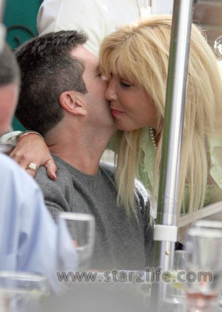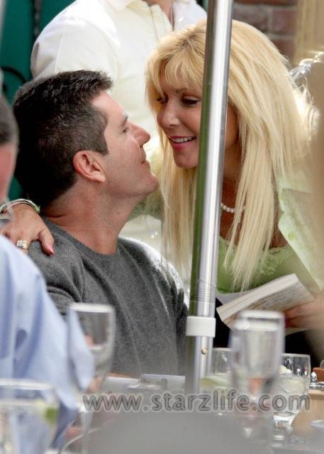 American Idol judge Simon Cowell was out to lunch at The Ivy in West Hollywood on Thursday and ran into David Hasselhoff’s ex-wife Pamela Bach, and by “ran into” i mean with the lips as the two nearly made out with eachother! Check out Starzlife’s photos of the smooch after the cut