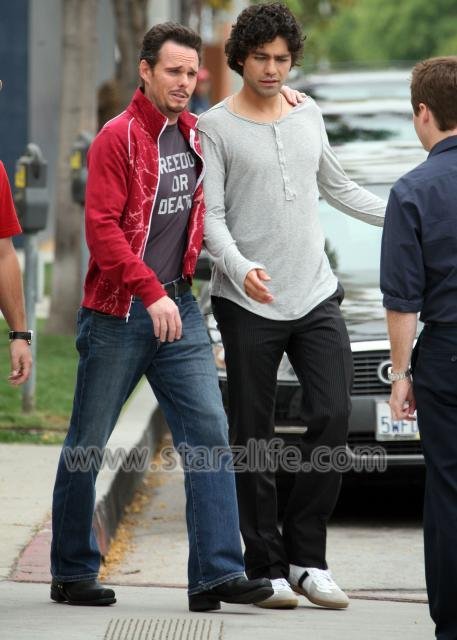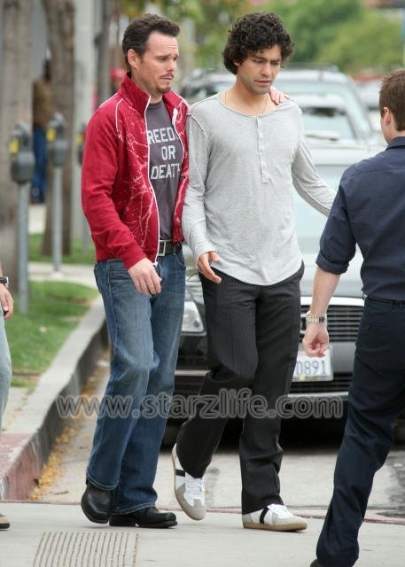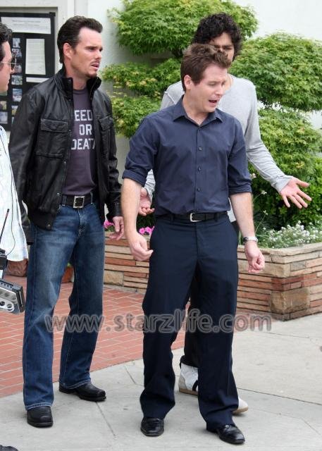 All is good on the set of Entourage! Kevin Dillon and the boys were out filming in Hollywood on Wednesday.Season 5 of HBO’s hit show is set to return this summer and it’s sure to be another amazing season. Cast-mates Adrian Grenier and Kevin Connolly were also on hand to film scenes outside of the Urth Cafe. While Dillon made a couple outfit changes during the filming, Grenier seems to have shaved off the scruffy grizzly beard that he had been sporting earlier this spring.