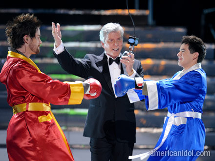 Ryan Seacrest did his usual “leave us hangin” when he said the word David, but he quickly followed up with (as expected) Cook! who has been gaining momentum on front runner David Archuleta since his rendition of Billie Jean over 6 weeks ago.