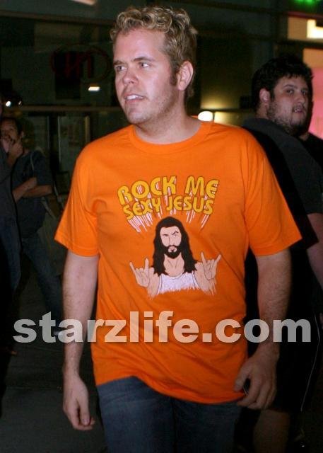 Perez was sporting a “Rock Me Sexy Jesus” shirt, which appears to be a big marketing slogan taken from the upcoming movie, Hamlet 2, which will be released on August 29.