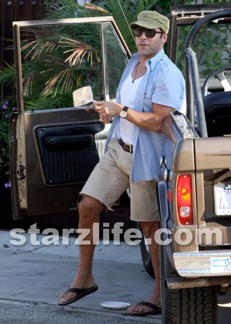Check out these StarzLife EXCLUSIVE!! photos of Entourage star Jeremy Piven (and his tan khaki cut off shorts) outside of his Malibu home. Jeremy’s old jeep doesn’t look like something you’d expect from a big star!