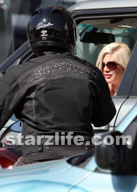 Tori and Dean met for lunch in Beverly Hills on Thursday, but knowing that he would end up having his picture taken and being the butt of bad jokes on at least one website, Dean arrived solo on his new Ducati motorcycle.