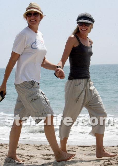 These two just can’t get enough of each other.  Newlyweds Ellen DeGeneres and Portia de Rossi took a stroll on Malibu Beach this weekend and would not let go of each other.  Take a look at some pics behind the cut.