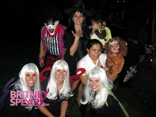 BritneySpears.com has posted some pictures from the weekend of the witch, Britney Spears with Sean and Jayden, (dressed as a turtle and a lion) along with her father Jamie (a killer clown) and three friends.