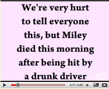 Well the hacker posted a video claiming that Miley had passed away after being hit by a drunk driver!