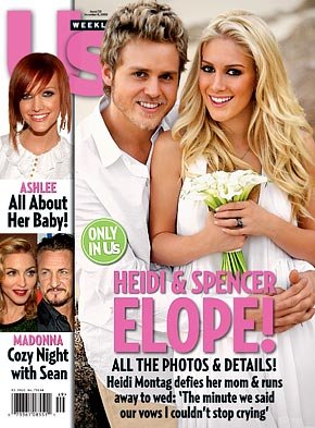 There here! Us Weekly released the cover shot of their newest issue featuring the Heidi and Spencer wedding, and some Us subscribers have already received their copy in the mail this afternoon.