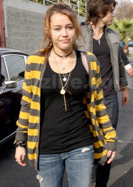Miley Cyrus and the fam went out to lunch in the Valley this past weekend. They even brought along her little twenty-year-old underwear model boyfriend Justin Gaston.