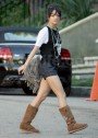 V is looking pretty skinny these days, dressed in short shorts and bigfoot boots.
