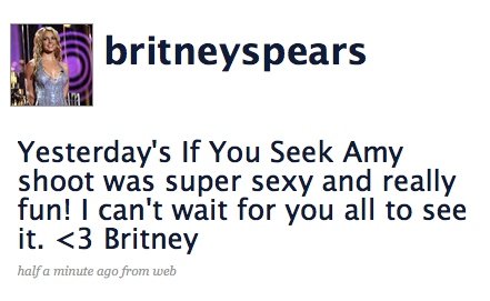 Britney Spears updated her own Twitter page yesterday with an update on her new video.