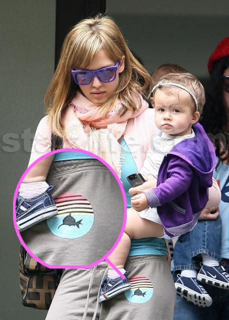 Well in these StarzLife photos from April, Jessica shows off some shark themed sweat pants. Is this some sort of shark activist logo?