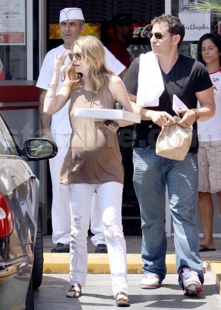 39 year-old Grey’s Anatomy star Ellen Pompeo made a pizza run in West Hollywood this weekend, and showed off her visible pregnancy bump.