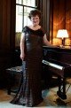 The blue dress makes her look like she’s cleaning house in a housecoat, but the rest look quite sophisticated. There is kinda this air about her that you know she is still a crazy cat lady at heart, but the makeover did right by her.