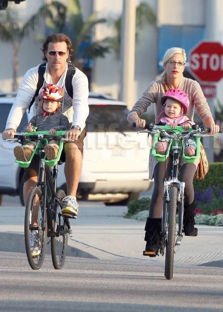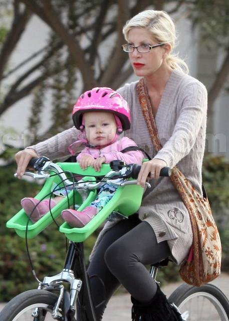 Little Stella Spelling-McDermott smiled for the camera as Tori & Dean rode bikes in Malibu for this photo op!