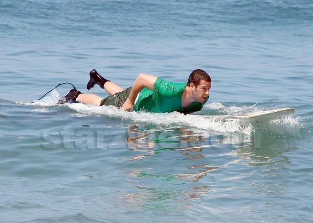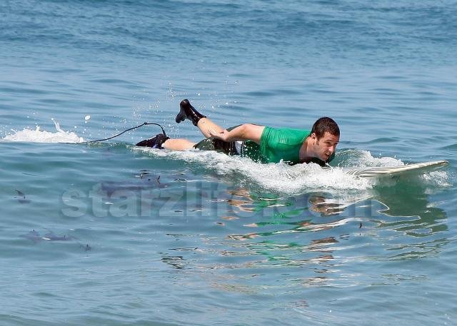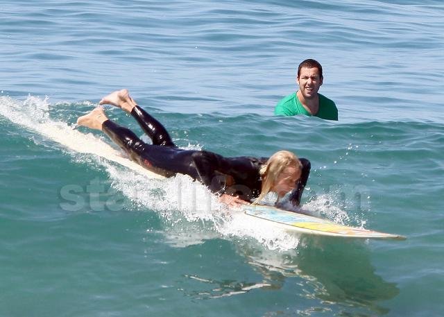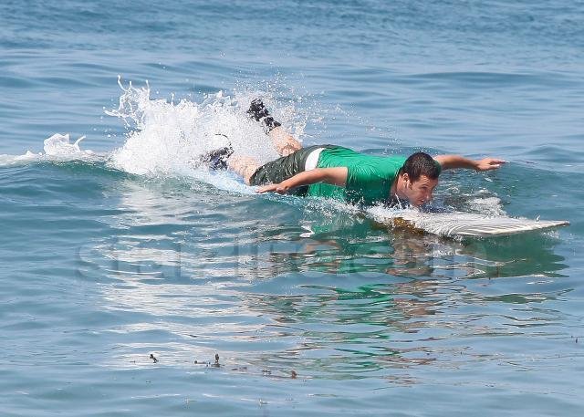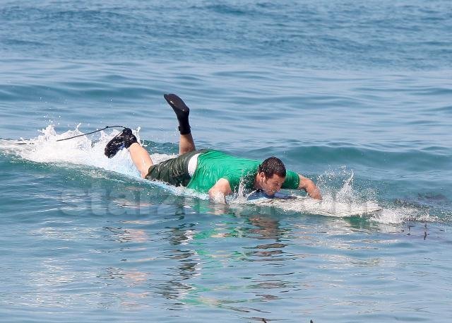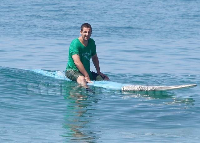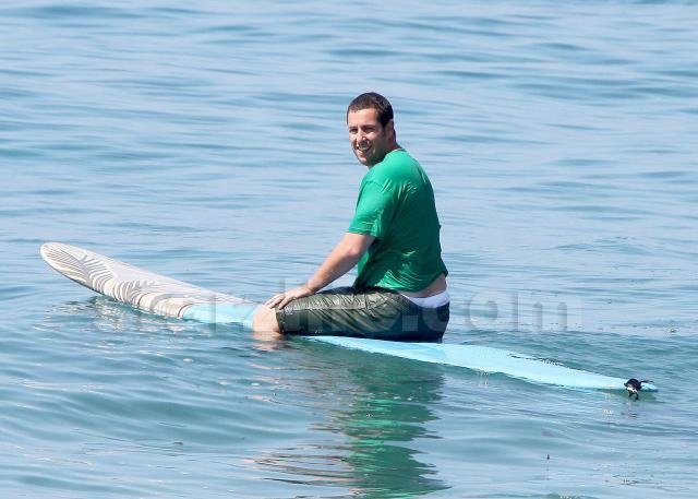 Funnyman Adam Sandler took to the waves in Malibu this weekend for some… sort of surfing.