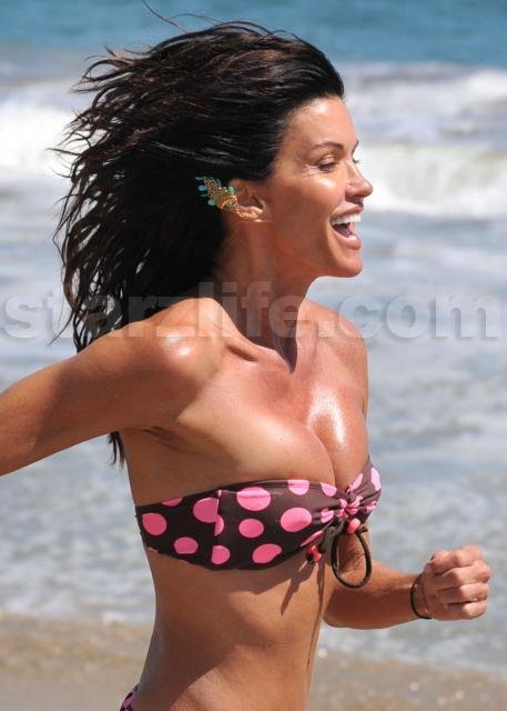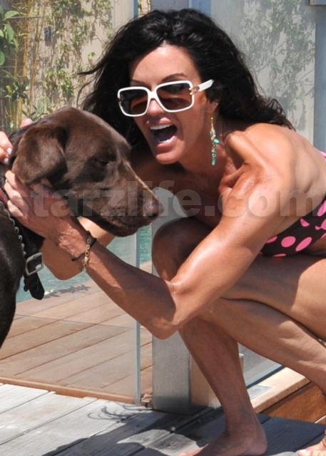Starzlife spotted the worlds first supermodel Janice Dickinson EXCLUSIVELY splashing around the water and playing with a dog on a recent trip to malibu to soak up some sun.