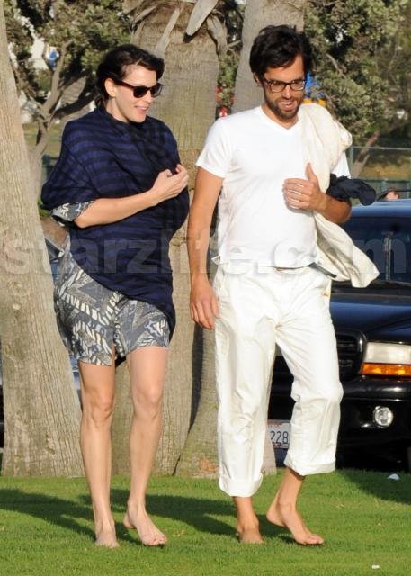 We’re all about celebs and their unfamous friends today on Starzlife – here’s Liv Tyler, star of Heavy, and some guy who looks like Jemaine Clement from Flight of the Conchords, except more ethnic, strolling barefoot in the park. Aww.