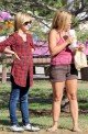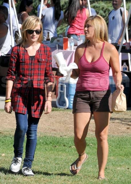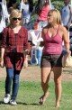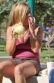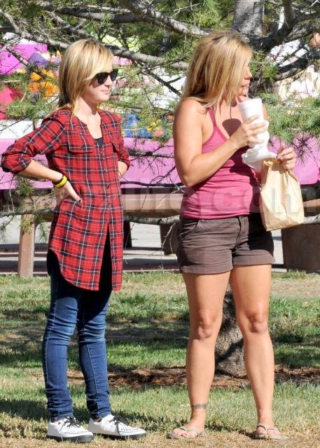 We spotted former Baywatch babe Nicole Eggert chowing down on a burger and fries as she enjoys one of that last hot days at a park in LA with her daughter Dilyn.
