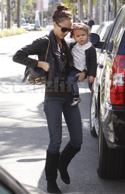 As mom Jessica Alba went to load her into her car seat yesterday, she gave one more look and smile out to the present photographers.