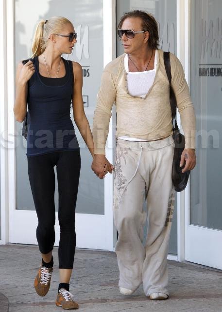 We spotted Mickey leaving a romantic evening at the gym with his much younger girlfriend this week in West Hollywood.