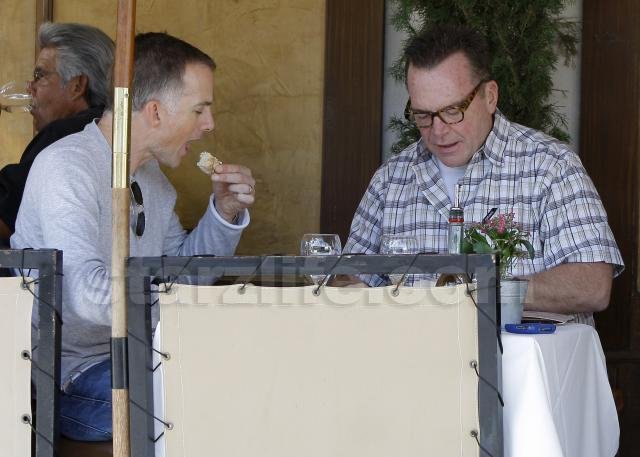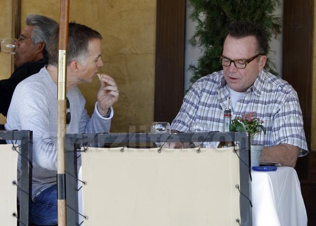 Tom lunched with a friend outside in the November sun this week in Hollywood.