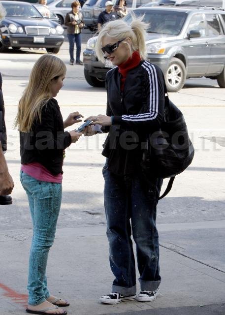 Mom Gwen Stefani laughed and stopped to sign an autograph for a passing fan.