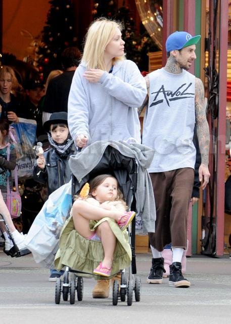 It looks like Shanna Moakler and Travis Barker have flipped their off/on/off/on/off/on/off relationship to the “on” position yet again. The twosome were spotted at Disneyland with their kid. Have they set aside their differences so their daughter could meet Mickey? Or was this a last minute date they couldn’t find a babysitter for? We can only wonder. Or we can wait for them to Twitter about it.