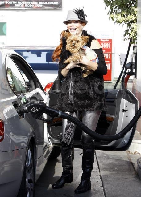 Phoebe and her pooch, Henry stopped by her favorite gas station on her home away from home, Robertson Blvd, and posed for the photogs while filling up.