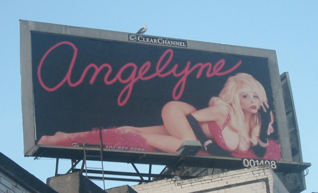Bad Boy Films, which sounds like a producer of poor quality gay porn but is actually Puff Daddy‘s film studio, is being sued by Angelyne. If you don’t know who Angelyne is, you’re either not from Los Angeles or you are but have never been outside and looked up. She’s this 700-year-old shriveled pink-Corvette-driving barely-breathing punchline who’s famous for plastering Los Angeles with billboards advertising nothing beyond the fact of her (tenuous) existence. Anyway, this bag is trying to pry some scrilla from Puff’s pockets because the Biggie biopic, Notorious, features a 12-second-shot of one of her billboards.