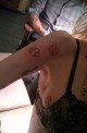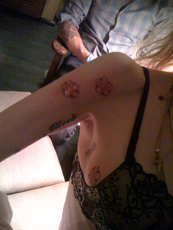 The wacked out rocker got some random flower tats all over her body, in places that require her being topless to show off.