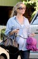 Neutrogena pitchwoman and Eric Dane’s wife Rebecca Gayheart bought a blanket with little purple balls on it, then went to go hang out with a friend. She’s real pregnant. Starzlife tagged along!