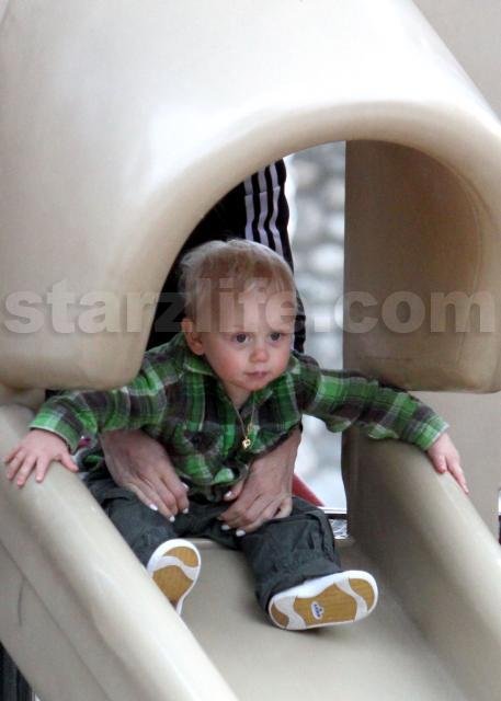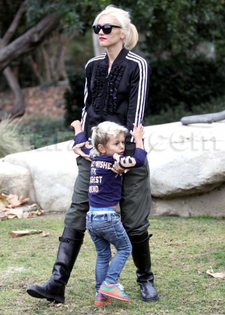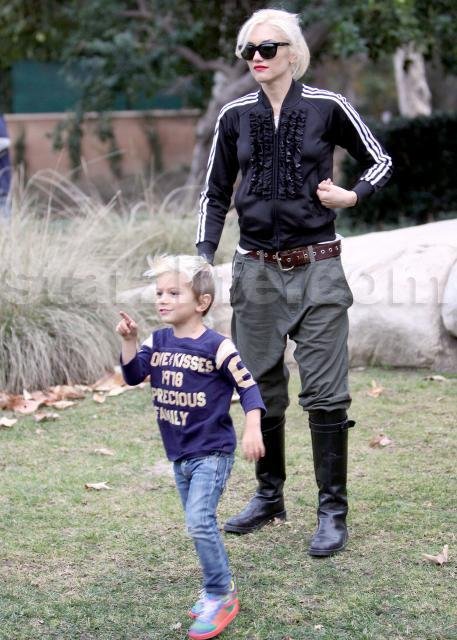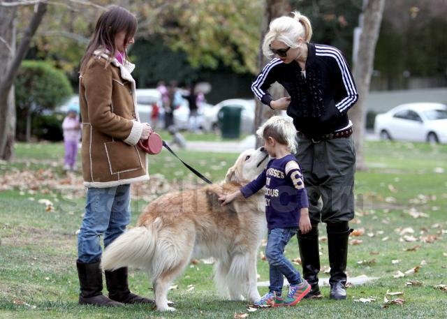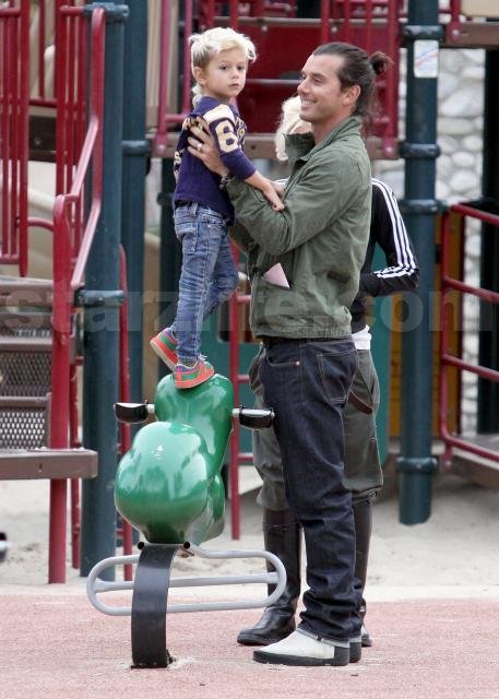 This is one cute clan, you gotta admit. Gwen Stefani, Gavin Rossdale, Kingston Rossdale, and Zuma Rossdale spent some time at the park in Beverly Hills. At one point, Kingston pet a big dog. It was adorable. Starzlife was there.