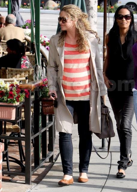 Two examples = trend! Everyone in Hollywood is hanging out at Sunset Plaza AND pregnant! Rebecca Gayheart walked back to her car after enjoying a lunch with her girlfriends recently. You know who was there. (Starzlife.)