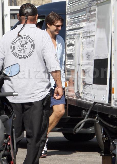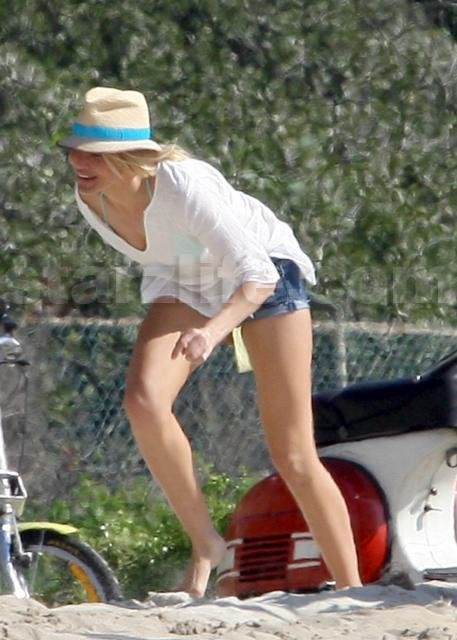 We caught Cameron Diaz running around the set of Knight and Day as it filmed reshoots in Los Angeles. For the less industry-savvy among you, reshoots are when you need to shoot additional footage for a terrible movie with the purpose of making it less terrible. They never work. Knight and Day is an action comedy buddy movie also starring Tom Cruise. If this recent article on the state of actress’s paycheck is to be believed, Cameron’s banking a mere ten mil. I bet Tom’s pulling down twenty. Ugh, it’s 2010 and the absurd income disparity would have you believe slavery’s still legal and Coca-Cola still has coke in it.