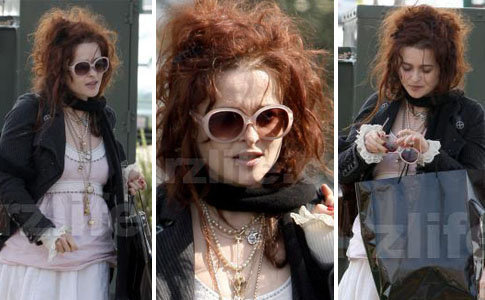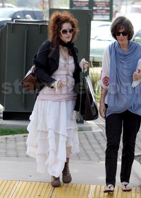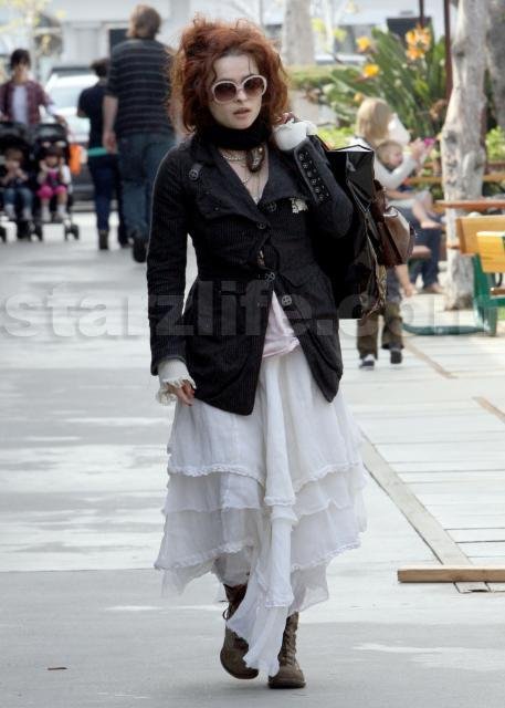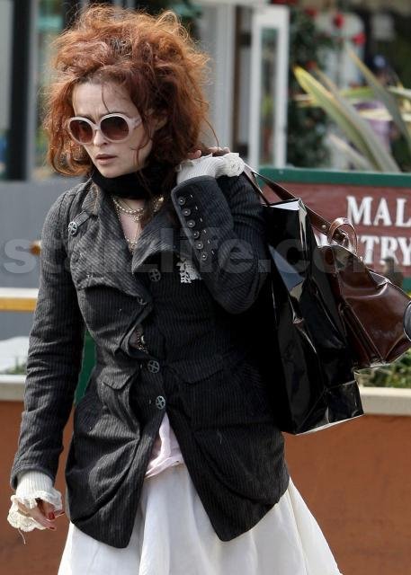 The girl’s got a look, you gotta give her that. Several, actually, and here she is wearing all of them at once! Marla Singer, aka Helena Bonham Carter, walked around Malibu recently. Starzlife was there.