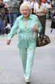 Where do old-people clothes come from? I’ve never seen ’em in stores. Also, what is about turning 70 that makes people say to themselves, “Banana Republic no more. From here on in it’s silky pastels and cardigans”? Starzlife caught Ms. Thang, aka Betty White, walking down the street in Beverly Hills recently. Fans of hers recently started an online campaign to have her host Saturday Night Live, because, come on. Wayne Gretzky gets to?! Chris Kattan shouldn’t even be allowed to watch it. I know you read this site, Lorne. Give the fans what they demand.