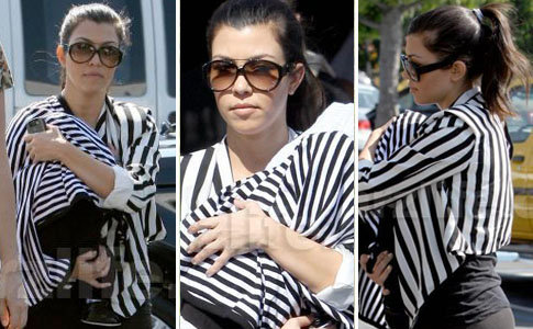 It’s new mommy Kourtney Kardashian! The beau of American Psycho-channeler Scott Disick took new son Mason out for a walk in West Hollywood, draped in the uniform of a Foot Locker employee. Mason’s birth was documented on his mom’s reality show Keeping Up With the Kardashians, and it was the most graphic footage of the birthing process ever shown on a television network that isn’t Animal Planet. Kourtney’s other reality show, Kourtney and Khloé Take Manhattan, begins filming its second season soon. What shoes will the sisters buy? What’s the cupcake scene like down south? Tune in!