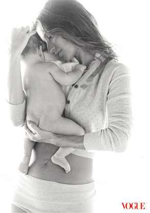 Gisele Bundchen showed off her little baby Benjamin (‘s butt-crack) in the latest issue of Vogue magazine, as well as her killer post baby bod!