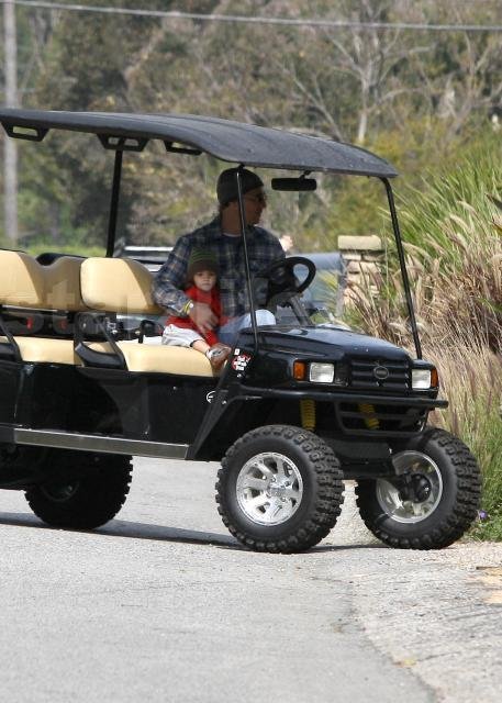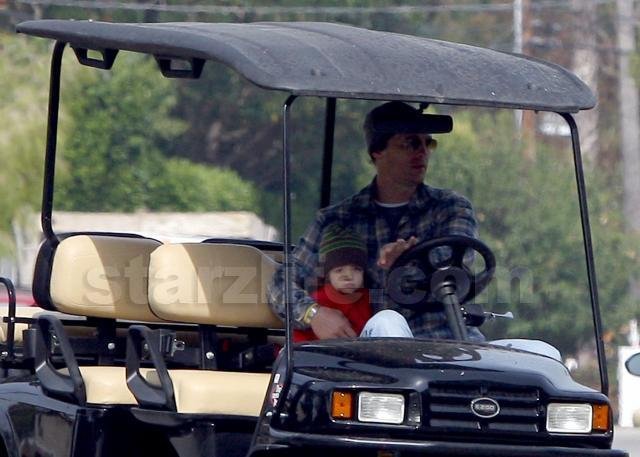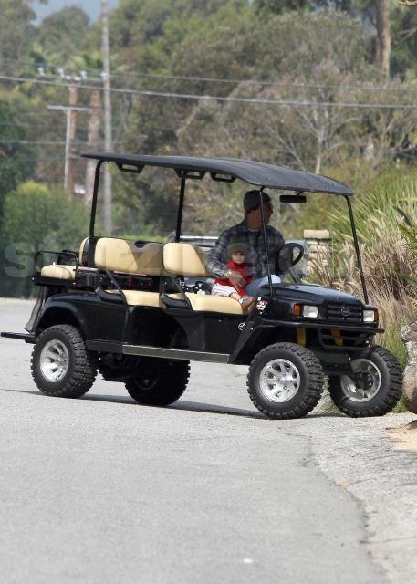 We spotted Matthew McConaughey taking his little boy, Levi, for a golf cart stroll on their Malibu estate yesterday.