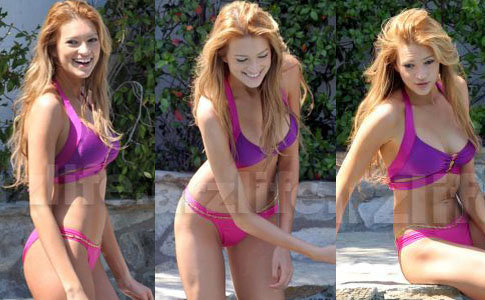 Kyle looked AMAZING in her purple bikini and jewelry by designer Madeline Beth while trying to soak up the sunshine. Looks as if the water may have been a bit chilly though.