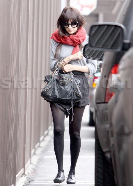 Nicole looks great with the short skirt and red scarf, don’t you think?