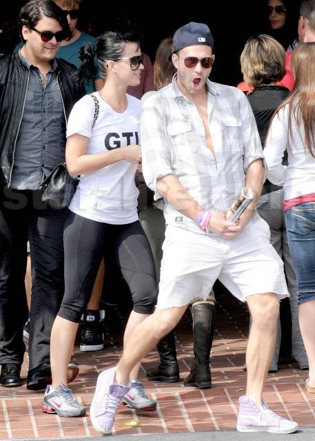 Katy dons her Jersey Shore inspired T as she and some goofy friends take a shopping trip to Fred Segal in West Hollywood.