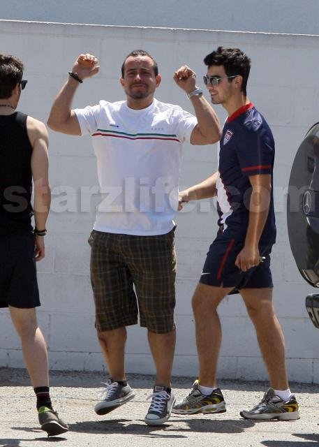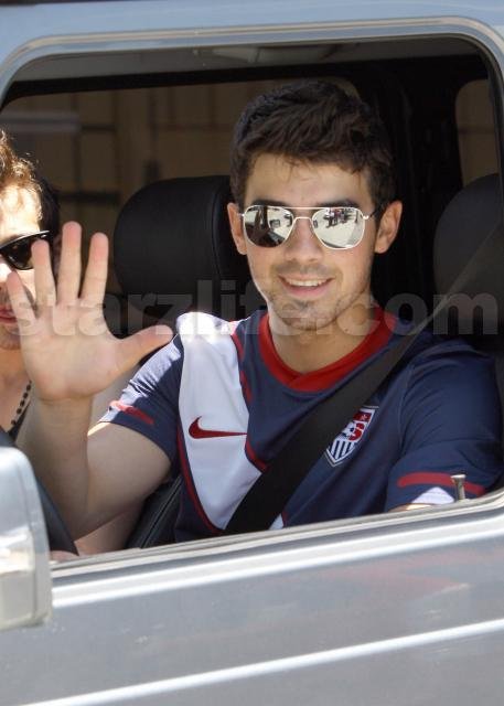 Joe Jonas, decked out in his USA Soccer uniform, hit up a gym in Los Angeles with some friends yesterday.
