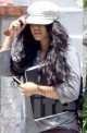 Decked out in the definition of brown sweatpants, V used her hand, and her train conductor hat to try and dodge us.
