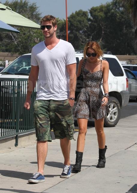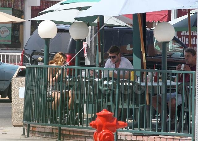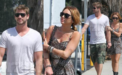 Looks like all’s well in Mileywood. Miley Cyrus and boyfriend Liam Hemsworth hit the streets yesterday for lunch at Paty’s in the valley.